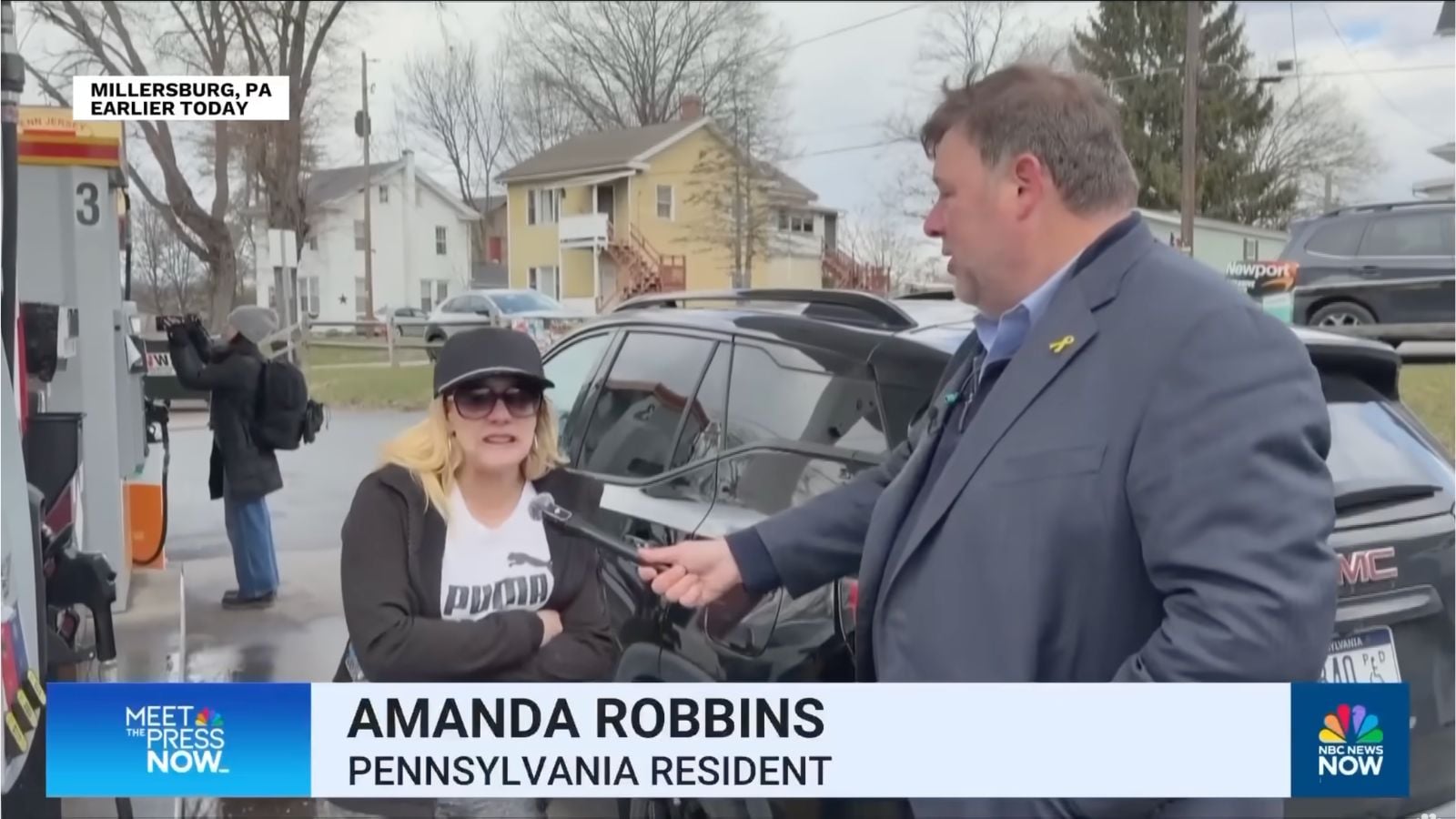 The segment aired Tuesday on NBC’s Meet the Press NOW. Senior politics reporter Jonathan Allen drove to a Penn Jersey Mart in Millersburg — a small town in Dauphin County, central Pennsylvania, in a congressional district that went for Trump by just five points in 2024 — to ask voters how they feel about the war in Iran and what it’s doing to the price of filling their tanks.