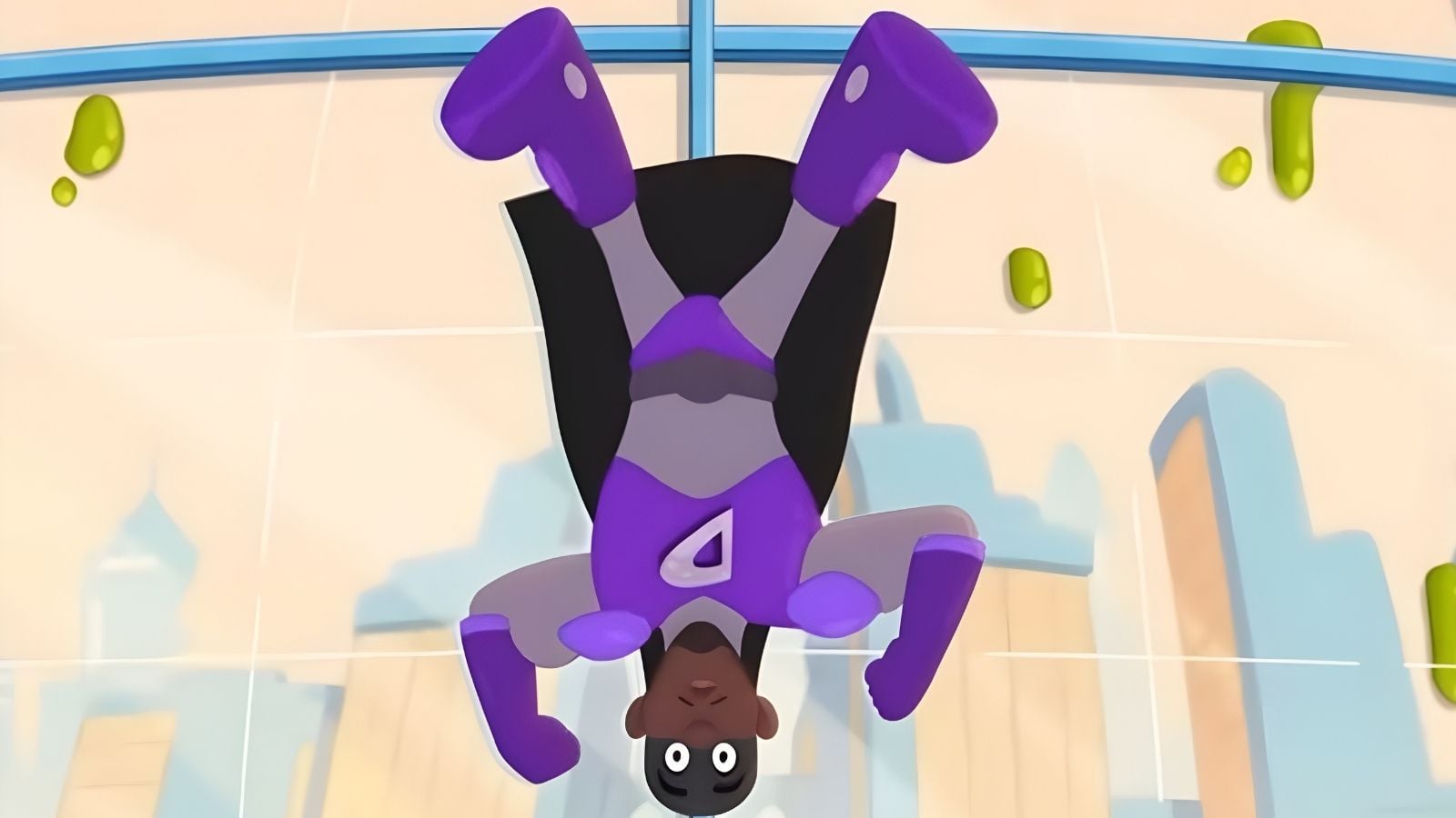 Now meet Captain Durag in episode eight. He’s an imaginary hero AJ conjures up to protect Slime City from chaos. Dressed in a purple outfit with a flowing cape, he battles trash monsters and promotes simple lessons like cleaning up your room. The standout feature? His mask and cape are styled from a durag, a headwrap deeply rooted in Black hair care and style.