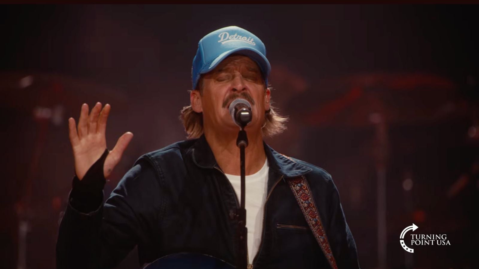 The verse was an addition to Cody Johnson’s 2021 hit “‘Til You Can’t,” which Kid Rock said he was moved to write after the assassination of TPUSA founder Charlie Kirk in September 2025. The performance ended with photos of Kirk and his widow, Erika, followed by the Bible verse Isaiah 6:8: “Here am I, send me.”
