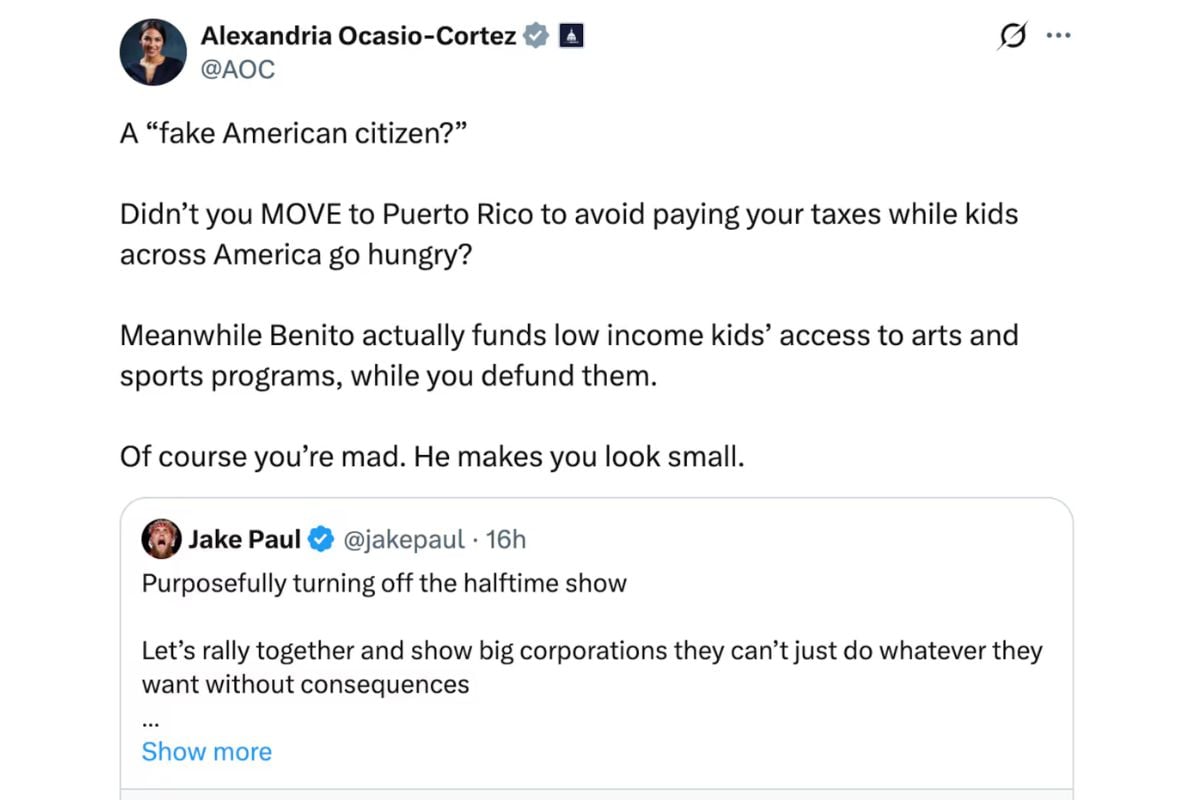 Before Bad Bunny’s halftime performance at Super Bowl LX in February, Paul posted on X urging fans to boycott the show. He called Bad Bunny — a six-time Grammy winner born in Puerto Rico — “a fake American citizen performing who publicly hates America.”
